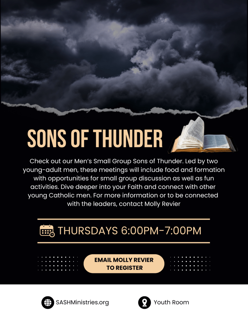 Applying the four pillars for the teens of our Summer at Sacred Heart program, we are excited to introduce to you SASH Ministries! A ministry for all teens in the Shenandoah Valley. Join us at some or all of our events including: